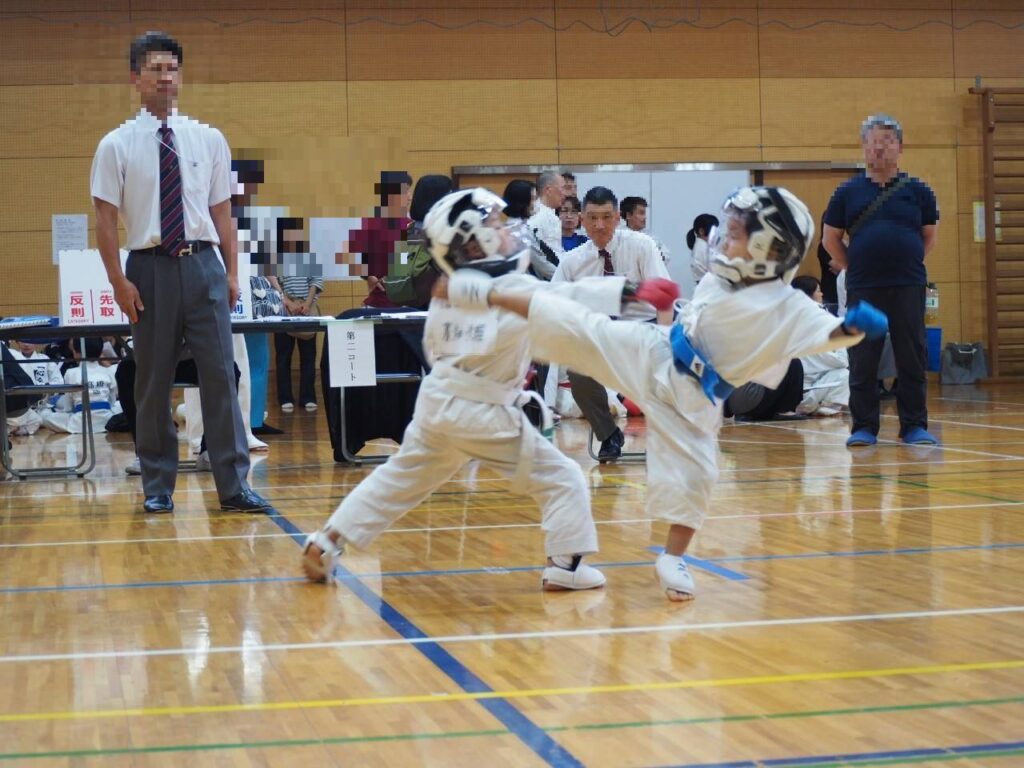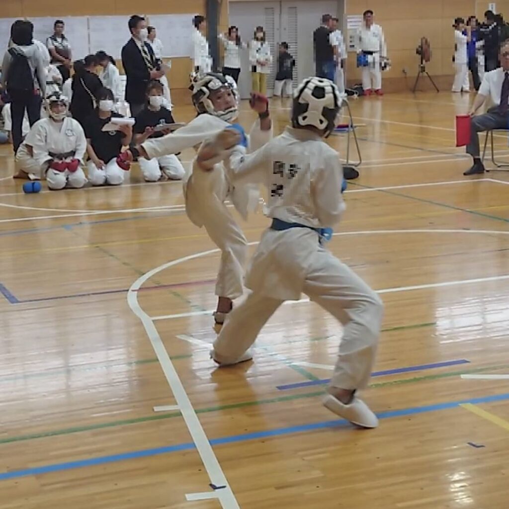 幼年の部、形、組手とも若葉の二人が優勝と準優勝、制覇しました。