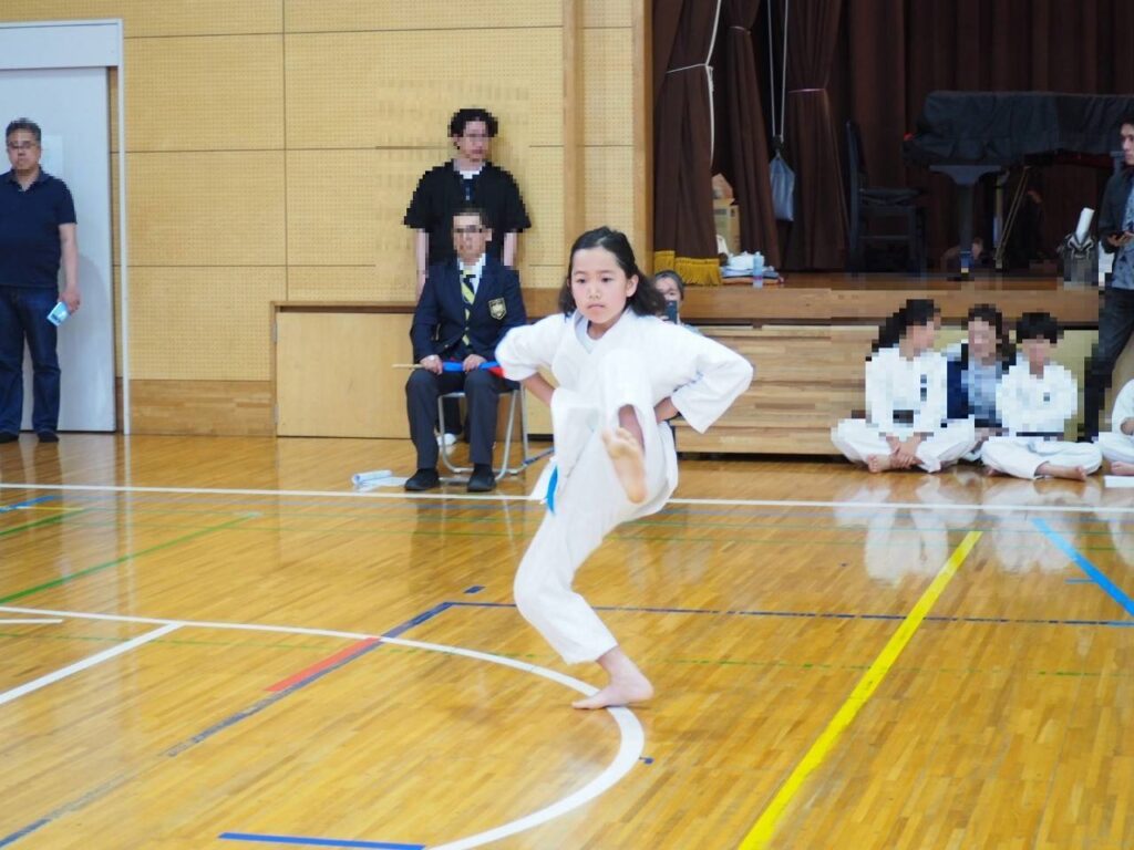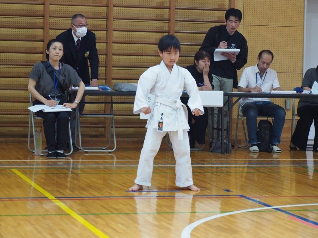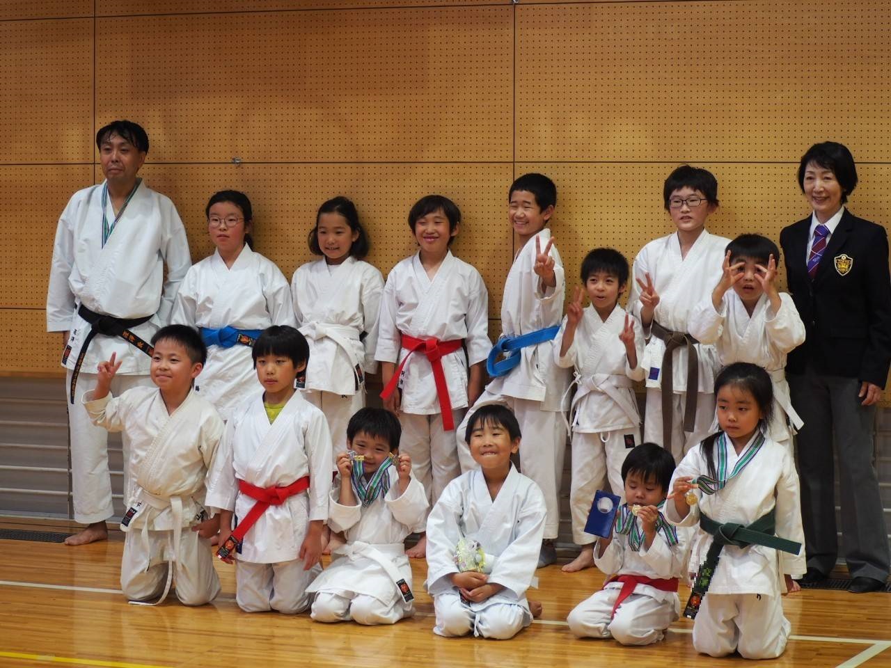 小学3、4年生の部、男子は形三位入賞、女子は形で優勝を勝ち取りました。