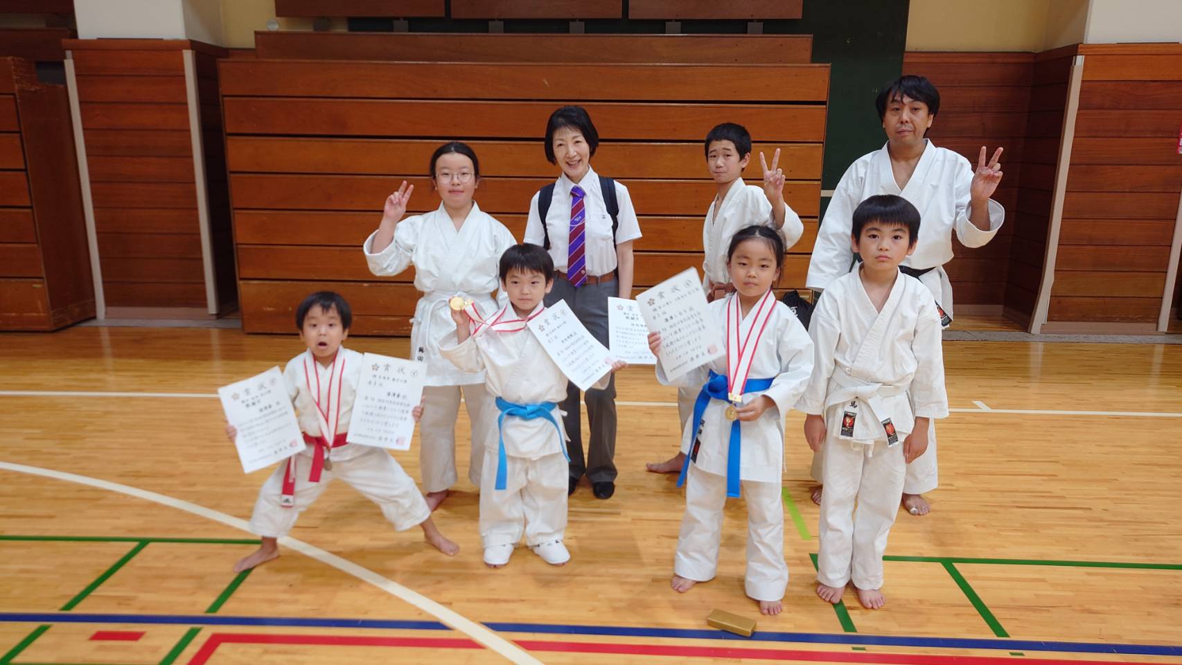 戦績です。小学3年生女子が、3、4年生形の部(B)で優勝を果たしました!組手では幼児の部で2人が優勝と準優勝を勝ち取りました!他の選手も形や組手で一勝をあげるなどそれぞれの成長や頑張りの感じられる試合展開でした。
