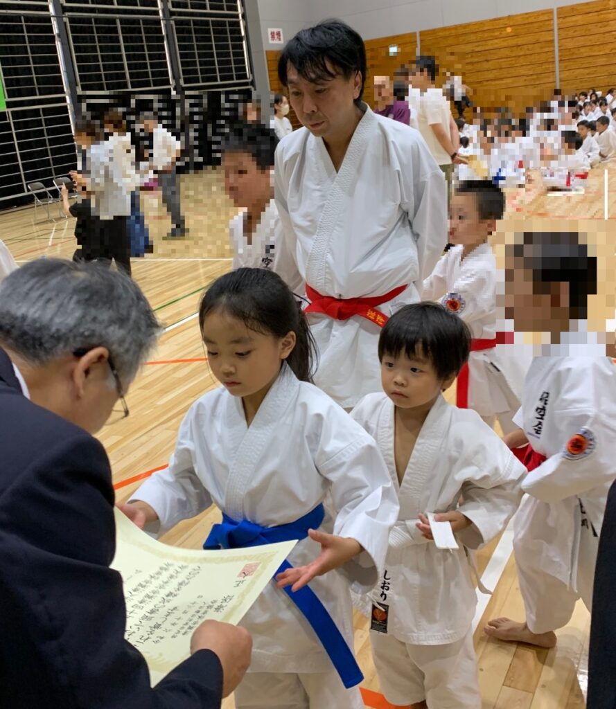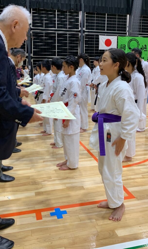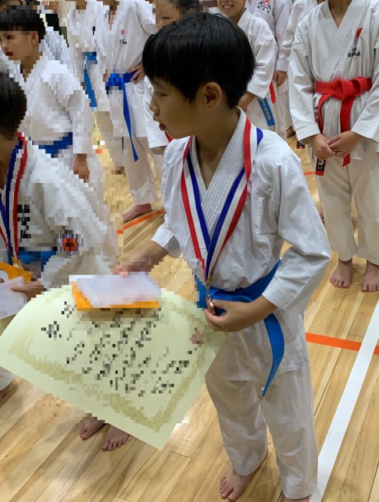 戦績です。形は5年生女子が惜しくも三回戦敗退の敢闘賞、幼年の部の二人も敢闘賞、ファミリー団体の部は1組が決勝戦に残る善戦をして敢闘賞を頂きました。