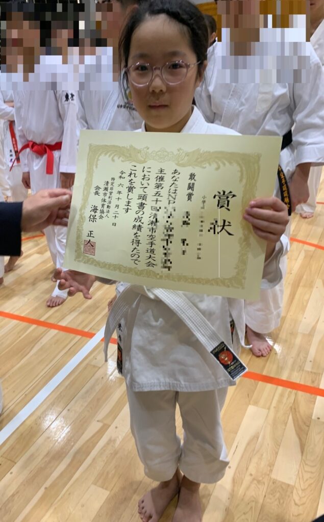 組手は一般男子が敢闘賞、小学6年男子、5年女子が惜しくも敢闘賞、3年男子が3位入賞メダル獲得、幼年の部は準優勝と3位に輝きました!!他の選手たちも賞状は頂けなかったものの大奮闘して、緊張した中、試合の手応えを感じていたようです。