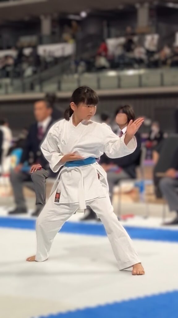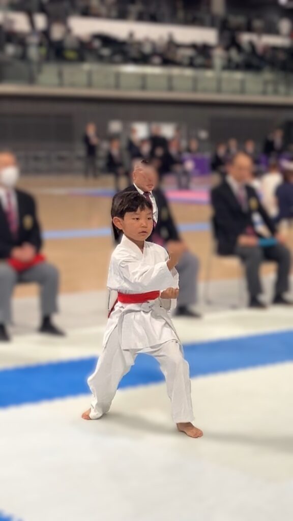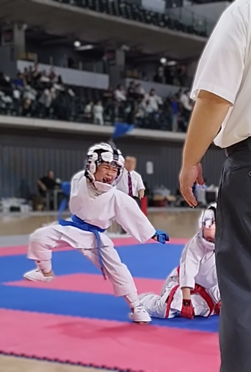 そんな中、1年男子の1名が組み手で着々と勝ち上がり、3位メダルを手にしました。もう1名の1年男子は形は5位の優先1、ランキングラウンドブロンズマッチでは得点わずか0.1差で惜しくも敗れました。(上位の選手との兼ね合いで実質3位となり全国大会出場権獲得予定)組手は5位の優先2で敢闘賞を頂きました。