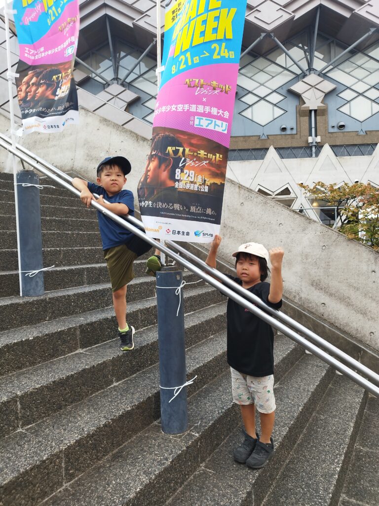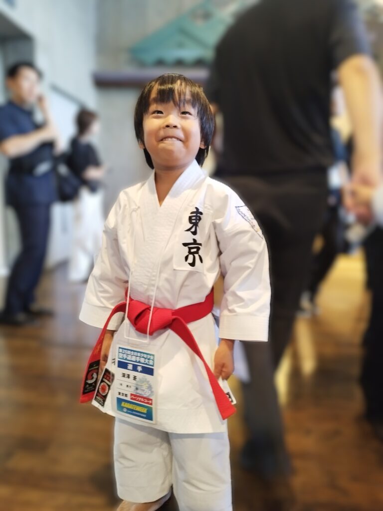 形は東京都が優勝,組手は兵庫県の優勝となりました。2人とも大舞台の全国代表約150名の中で精一杯戦いました。