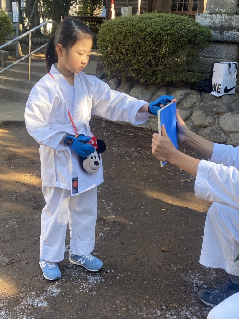 15キロと30キロの試割があり、なかなか割れずに苦戦する子達もいましたが、全員が今年の目標を叫んで割ることができました。